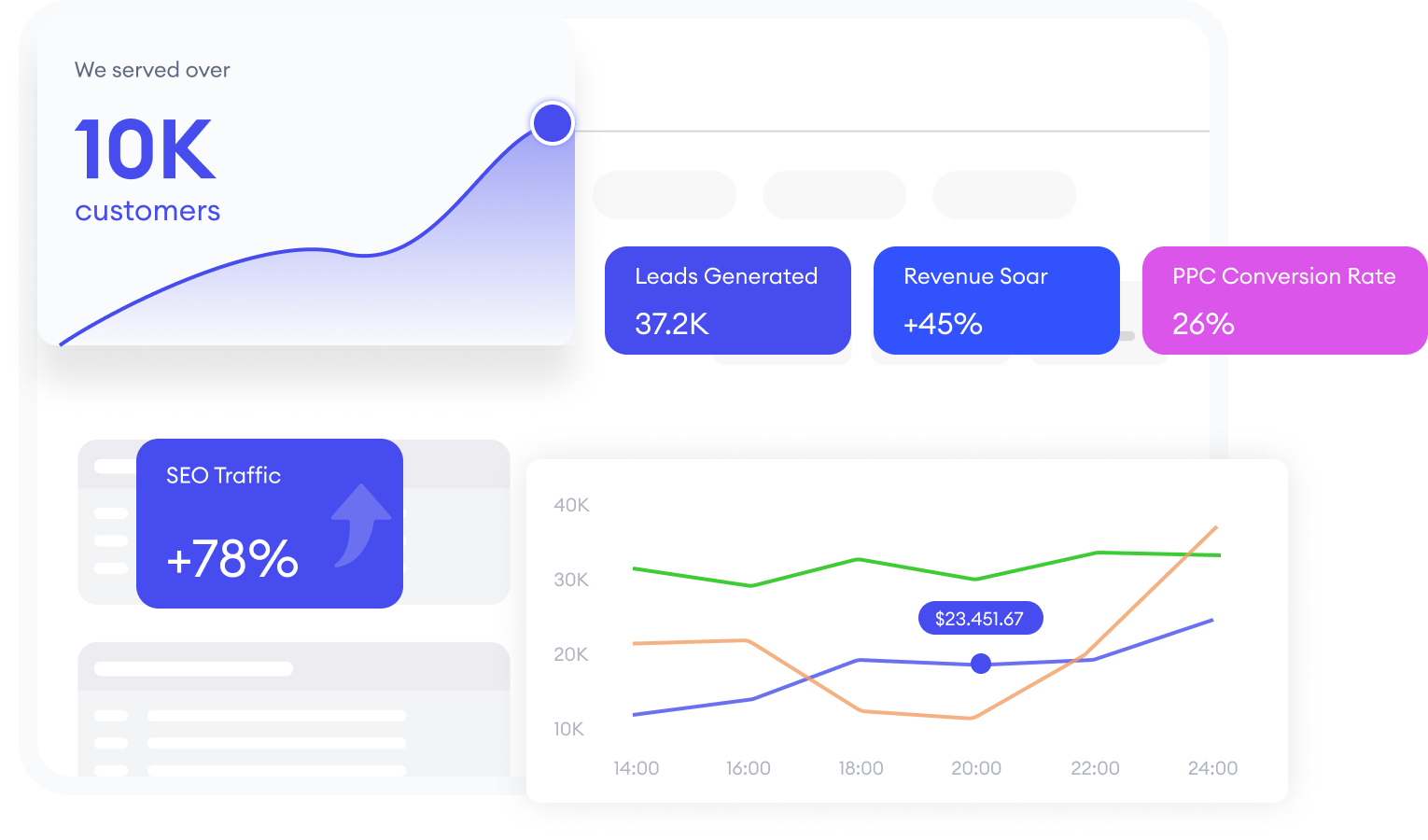 Traffic Growth 260%126% Increase in Deals157% Revenue Boost for Ads PromotionApp Visibility Increase 155%86% Client Retention Rate