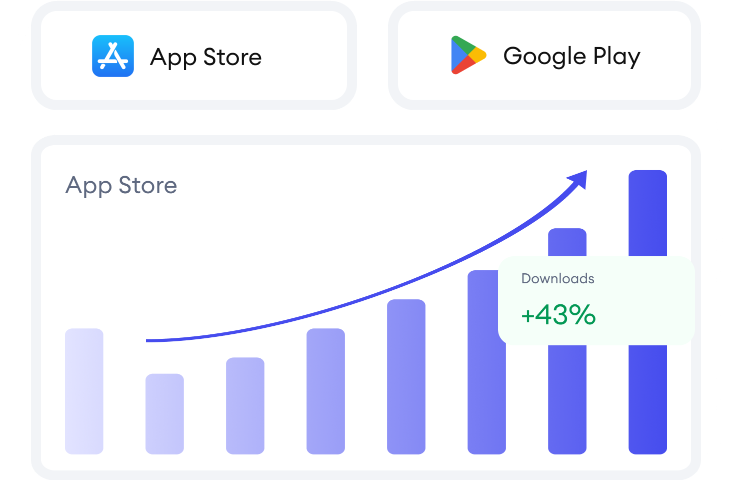 Propel your app to new heights with increased visibility, skyrocketing downloads, and measurable revenue growth.
